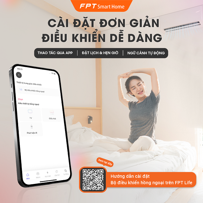 Thông qua bộ điều khiển hồng ngoại của FPT Smart Home, người dùng có thể...